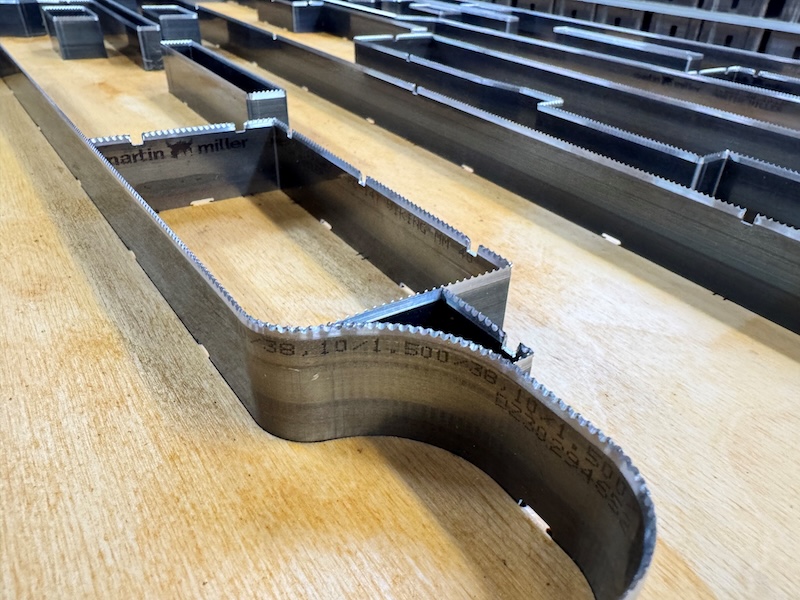 Steel Rule Dies are economical solutions for cutting tools. Sharples has years of experience, state of the art equipment, and the inventory to meet any industries needs. Whether your trimming gaskets, foam, medical products, honeycomb, plastics, paper, fabric, or rubber, Sharples is the number one choice for numerous industries. We offer multiple die bases: standard wood dieboards, clear plastics for clean room or alignment assistance, Rayform for stability or heat insulation, and aluminum for the ultimate heated die. "Bending all the Rules" is not just our slogan. We stock a huge inventory of knifing in multiple heights. All our CNC automated benders accommodate our vast array of inventory. We prioritize tolerance reporting and can supply, upon request, a QA Inspection report with a CNC probe or coordinate table depending on your unique requirements.